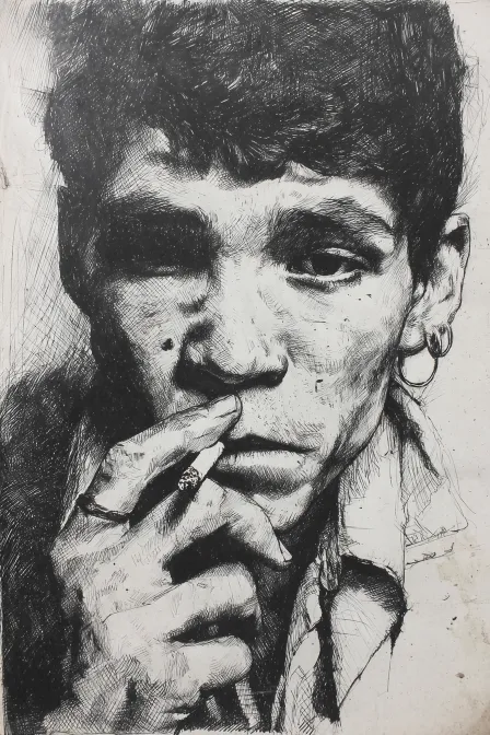 Midjourney Bot 更新时间:2025-12-27 00:24幅黑白素描风格的艺术作品,展示了一个人的半身像。一个独一无二的霸气威猛,人物的发型短且整齐,耳朵显露出明显的轮廓。抽烟,手指轻轻搭在下巴上,传达出深思熟虑的情感。背景简单,突出了人物的特征,画面整体以细致的线条和阴影表现出丰富的质感与深度。增加了艺术作品的个性化。 --ar 2:3 --v 7 --c 5 --weird 15 --stylize 1000 --sref https://images.gogpt.vip/aigf/m_origin/20241020/227911/vq3h9zo4ydr1ngia.jpeg --oref https://images.gogpt.vip/aigf/m_origin/20251225/227911/oxs7bq7tea1f20xa.JPG --ow 400 --sw 172