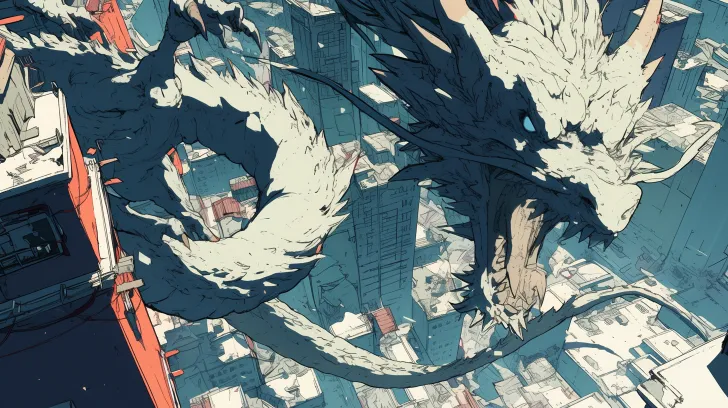 Midjourney Bot 更新时间:2025-12-27 00:27二维日漫风格,天空中有两只龙在盘旋,地上有一只银白色的龙族,一只右爪子抓着房顶,头向左扭,张这大嘴。周围的城市被破坏殆尽,到处残檐断壁。大仰视,三角形构图。 一拳超人, --ar 16:9 --stylize 100 --niji 6