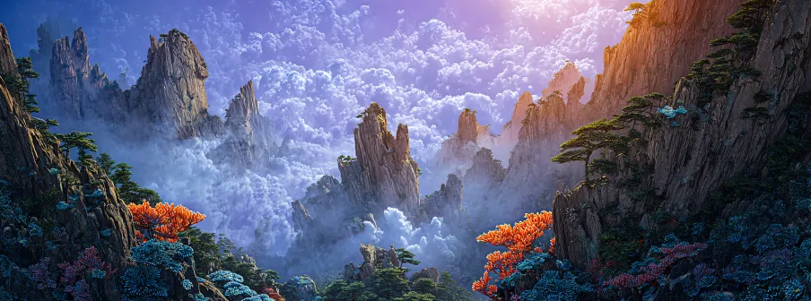 Midjourney Bot 更新时间:2025-12-28 00:00https://images.gogpt.vip/aigf/m_origin/20251227/1905958/urisxv6vk3c2w17o.png 壮丽的云南石林山地景观,高耸的喀斯特石柱群直插云霄,石缝间生长着翠绿苔藓和垂挂藤蔓,周围环绕着茂密松树林和云雾缭绕的青山。超现实主义摄影风格呈现Peter Lik大师级风景构图,Octane渲染光影穿透薄雾,广角俯视捕捉全景,晨曦中的金色暖阳斜照峰林,岩石肌理高清逼真,画面充满大地生命律动的神秘氛围。 --ar 4140:1530 --v 7 --style raw --c 3 --iw 1.5 --no Character,人