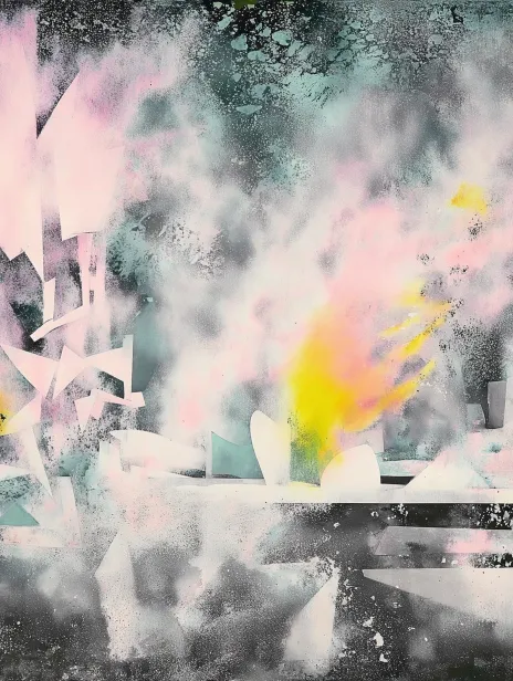 Midjourney Bot 更新时间:2025-12-26 00:12这幅抽象艺术作品展现了梦幻般的氛围,背景以柔和的灰色和蓝色为主,伴随着色彩丰富的光斑,如明亮的黄色和淡粉色。画面中有模糊的形状和纹理,营造出一种流动感,给人一种在光影交错中的感觉。光线似乎从画面的某个角落散发出来,增添了神秘感和层次感,展现出一种探索自然与情感交融的艺术风格。 --ar 3:4 --v 7 --weird 3000 --stylize 1000
