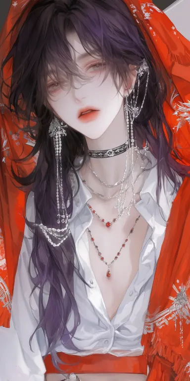 Midjourney Bot 更新时间:2025-12-26 00:11面部特征:白色长头发红色眼睛的古风男子,红色发带扎在脑后,用发带束起高马尾,穿着一身汉服红衣,妖艳的笑着看镜头,有虎牙。 视角:半身特写 远景 背景: 古风背景 风格与画质: 古风 --ar 9:16 --style raw --stylize 360 --niji 6 --profile 6yn7nth enrcvog k4ichv8 --no raise one's head