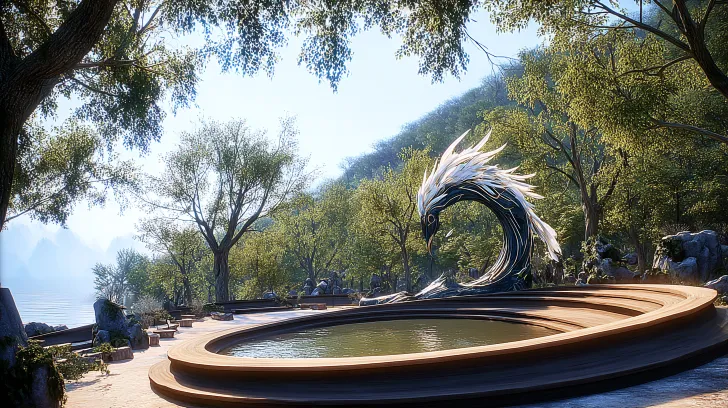 Midjourney Bot 更新时间:2025-12-26 00:11超宽画幅航拍视角,秋日黄昏,顶级大学滨水公园,生态河流与蜿蜒小径贯穿全园。 画面中央为新中式观景楼阁:深灰色筒瓦歇山顶,镜面钛合金立柱与玻璃幕墙,坐落于发光混凝土基座。周边点缀松竹,学生散落活动。 电影级渲染,8K,低饱和冷色调,唯建筑反射金色天光。风格:真实照片,建筑设计竞赛图。 -- ar:21:9, style:raw, photography, architectural visualization --ar 1:1 --v 7 --stylize 100 --sref https://images.gogpt.vip/aigf/m_origin/20251225/1972498/vr0sxly5zcib2x0v.jpg --oref https://images.gogpt.vip/aigf/m_origin/20251226/1972498/uf1midcub5u8is9j.jpg --ow 400