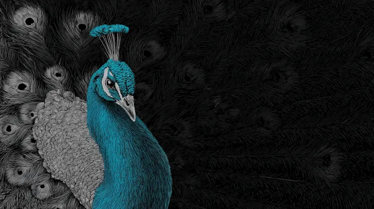 Midjourney Bot 更新时间:2025-12-26 00:11黑色的画面,90%是黑色,右上角一根小的蓝青色+黑色的孔雀羽毛,注意体积很小,只占画面的3%,很灵动轻巧纤长的感觉,摆放方向是左上右下斜着,孔雀毛的头部朝左上,根部朝右下;左下角正着放一个小的白色绘画的半个面具(只遮住眼睛的那种),只占画面5%,整体是绘画风格元素,不要实体物品,面具和羽毛整体减淡,好像是嵌在画面上一样 --ar 16:9 --v 7 --c 14 --stylize 96 --no 实体物品