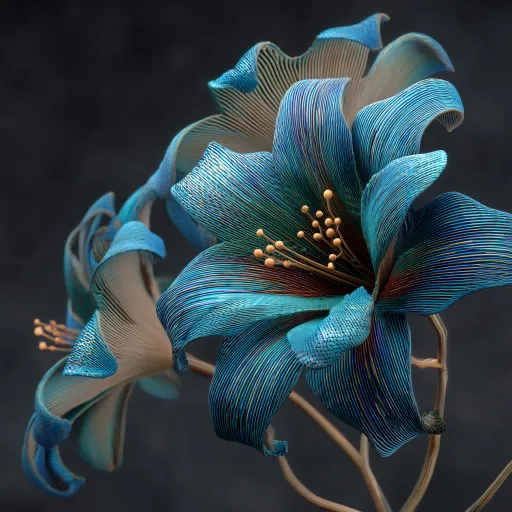 Midjourney Bot 更新时间:2025-12-26 00:12参数化建模的样式,样式具有强规律性和秩序感,样式是批量的衍生且保持一致性,十分规整统一,复杂但具有可控性这件作品是一个异想天开、超现实生物参数化花朵建模,带有光影效果。照未来交互臂设上的仿生兰花,结合孔雀元素。花瓣纹理如孔雀羽毛,通过参数化建模呈现高度规律的重复与渐变,纹理密度、走向由参数精准控制。色彩为孔雀蓝绿经典配色,过渡自然且具秩序感,受参数严格调节。花蕊形似孔雀头,大小、形态依参数变化。整体风格简约,突出参数化建模的秩序美感与未来感,背景简洁 超精细,高分辨率,超现实主义,复杂细节,Blender软件,超高清,最佳质量, --ar 1:1 --v 7 --stylize 100