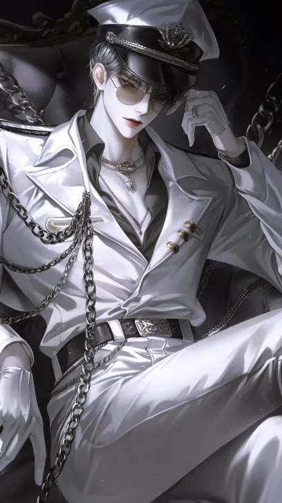 Midjourney Bot 更新时间:2025-12-25 00:08视觉系帅哥,黑白线画,日韩漫画,暖色调,画画风,噩梦画风,影子,最佳质量,里见胜三。清晰8K。黑色直发,黑眼睛,冷漠的眼睛,冷白皮,嘴唇浅色,帅气男人,银发 蓝瞳,太阳镜,穿着白色军装,身上缠着金属链。帽子上挂着银色配饰。戴着白色帽子和钻石项链,坐在沙发上 --ar 9:16 --style raw --stylize 180 --niji 6