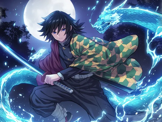 Midjourney Bot 更新时间:2025-12-25 00:11鬼灭之刃 水柱 富冈义勇,黑色长发,平静的蓝色眼眸,身着黄绿格纹羽织+鬼杀队制服,手持日轮刀,三只发光的蓝色水龙环绕身体(带半透明水流纹理),旋转的水能量轨迹,漂浮的浅蓝水晶碎片,巨大满月,黑暗森林的夜晚背景,鬼灭之刃官方美术风格,动漫插画,冷色调(蓝绿为主),戏剧化光影,锐利清晰的线稿画质18K --ar 4:3 --stylize 250 --niji 6 --sref https://images.gogpt.vip/aigf/m_origin/20251224/2000111/c2n7iisl0is1vmn6.png https://images.gogpt.vip/aigf/m_origin/20251224/2000111/6huoyxwqq46vlpk3.png https://images.gogpt.vip/aigf/m_origin/20251224/2000111/g7kfo0dt27odof5o.png https://images.gogpt.vip/aigf/m_origin/20251224/2000111/x44h8f4bmlp59z99.png --cref https://images.gogpt.vip/aigf/m_origin/20251224/2000111/x44h8f4bmlp59z99.png --cw 10