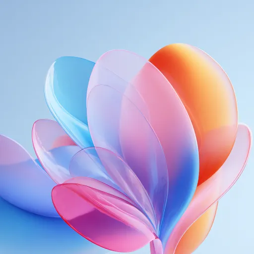 Midjourney Bot 更新时间:2025-12-25 00:08Transparent petal shaped shapes arranged in layers, presenting beautiful gradient colors, mainly pink, blue, and orange. The background is a soft light blue color, creating a clean and fresh atmosphere. The overall design presents a sense of fluidity and dynamic beauty, as if gently rotating, giving people a modern and abstract visual experience. The design style is simple yet artistic, suitable for digital art or illustration creation. --ar 1:1 --v 7 --stylize 100 --no Chaos and complexity.