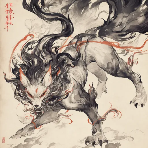 Midjourney Bot 更新时间:2025-12-25 00:11Classic of Mountains and Seas mythical beast, Nine-Tailed Fox, Chinese style, ink wash texture --ar 1:1 --stylize 100 --niji 6