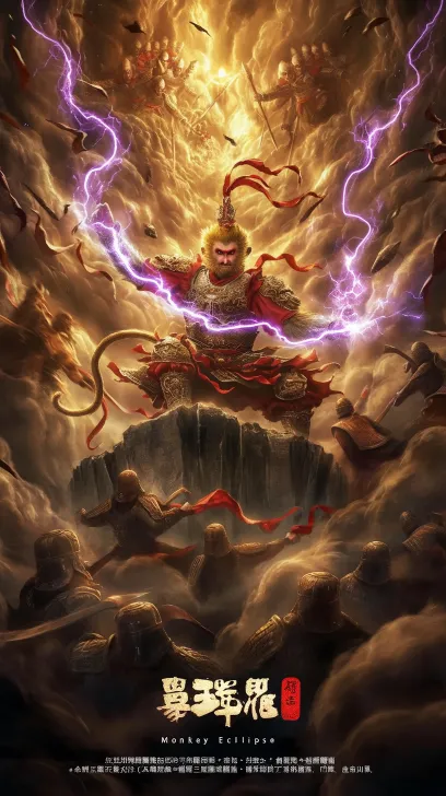 Midjourney Bot 更新时间:2025-12-24 00:12https://images.gogpt.vip/aigf/m_origin/20251223/1999072/o4icefsfcdwg2wje.jpg https://images.gogpt.vip/aigf/m_origin/20251223/1999072/tn6j6pnqrk9lt613.jpg 西游记主题之《美猴王 双生蚀》少儿影视电影,用于易拉宝背景,周身缠绕紫色闪电与金色火焰,背景是翻涌的暗黑云海和天兵天将,电影级光影,8K超高清,中式玄幻史诗风格,暗金红黑配色,竖向构图,强烈的视觉冲击感 --ar 9:16 --style raw --c 13 --stylize 100 --iw 0.25 --niji 6 --sref https://images.gogpt.vip/aigf/m_origin/20251223/1999072/yraud5yjmnzjjggt.jpg --no 具体人物