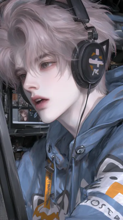 Midjourney Bot 更新时间:2025-12-24 00:18一名男性青少年,粉色短发,头发凌乱飘逸(带着黑色猫耳电竞耳机),深棕色的眼睛,粉嫩的嘴唇,穿着蓝色卫衣(有卡通图案)坐在电脑前,从侧面往下看,背景杂乱,是电竞训练室。电竞选手,整体构图活泼。有笔触感,正面,脸部特写,8K画质,超清分辨率。 --ar 9:16 --stylize 707 --niji 6 --profile z71sy35 1ln3ucy 138q21m --no 胡子,耳钉,黑色遮挡物,水渍,真人感