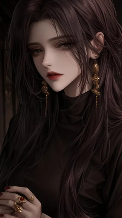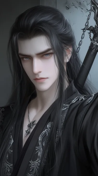 Midjourney Bot 更新时间:2025-12-25 00:03Bust portrait, a rebellious and cold ancient-style male, disheveled slightly damp black long hair, light gray eyes exuding a lazy and distant feeling, dressed in a loose black ancient-style robe with embroidered dark patterns, the inner lapel slightly open, the right hand firmly gripping the hilt of a black longsword adorned with silver patterns, with a silver chain hanging beside the sword blade, viewed from a selfie angle, delicate two-dimensional thick painting style, soft warm side lighting, clear skin texture, realistic hair strands, full of atmosphere, 8K HD, rich in detail. --ar 9:16 --style raw --stylize 100 --niji 6 --no watermark,text,European,old,tattoo,text,earrings,earrings