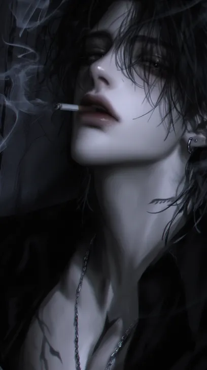Midjourney Bot 更新时间:2025-12-24 00:21一个英俊的男人抽烟,黑发蓬乱,深邃的眼睛,表情中带着一丝危险,穿着黑色丝绸衬衫微微解开,戴着银色链条项链,手指夹着香烟,烟雾缭绕,靠在光滑的现代墙上,昏暗的环境灯光,锐利的面部轮廓,电影般的明暗对比,写实的皮肤质感,细节精细,8K,HDR,氛围浓郁。 --ar 9:16 --style raw --stylize 800 --niji 6 --profile onre79n 5xbwpmy 9ufgjmo