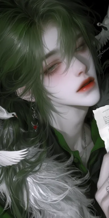 Midjourney Bot 更新时间:2025-12-25 00:03一位英俊忧郁帅气的帅哥,古代感,油画感,年龄看起来在22岁左右,古代青绿色长袍,毛绒绒的外套,青色的长发用,仙鹤,背景是水墨风格青绿色的,柔光朦胧感,非常细腻的脸部纹理肌肤,高清,8k,2.5D风格,厚涂质感,衣服上还有绣花,看起来是一件分成复杂的衣服,超级华丽风格,超级繁华风格 --ar 9:16 --style raw --stylize 700 --niji 6 --profile o3un67l spr1pcg u46zetc 6s7th5h