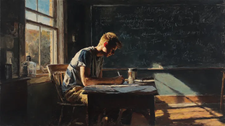 Midjourney Bot 更新时间:2025-12-25 00:00The 18-year-old stood tall in the warm sunshine, with slender and deformed shadows extending beneath his feet. The shadow inside forms a miniature reality scene: childhood cradle, elementary school wooden desk, middle school blackboard chalk handwriting, and the end merges into an adult door. Andrew Wise style realistic oil painting, with delicate brushstrokes depicting natural light and shadow, soft backlighting outlining the contours of a young boy, and a nostalgic brown tone palette. Background blurring processing, realistic texture texture, natural light penetrating through clouds. --ar 16:9 --v 7 --stylize 100