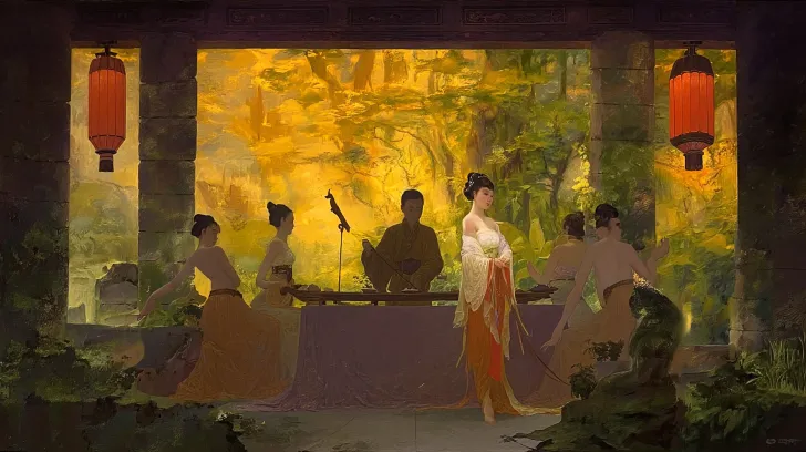 Midjourney Bot 更新时间:2025-12-23 00:16https://images.gogpt.vip/aigf/m_origin/20251223/1997486/w26tiot8eq33dvw6.jpg https://images.gogpt.vip/aigf/m_origin/20251223/1997486/1ksebcg5hh8zfaid.jpg https://images.gogpt.vip/aigf/m_origin/20251223/1997486/eu252dwa0qjchpw8.jpg https://images.gogpt.vip/aigf/origin/20251223/1766419809083793_1.png 宫内夜宴,中心是着霓裳羽衣的舞姬翩然旋转,衣带飘飘如飞天。两侧跪坐的乐师演奏箜篌,琵琶,笙箫。唐明皇与杨贵妃坐于高台,背后是巨大屏风,屏风上绘制了山海图。殿内宫灯如昼,烛光映在金色器皿与丝绸上。 核心词:中心构图,视角为角落俯瞰全景的偷窥视角,舞台感,华美舞衣,璀璨灯火,宫廷乐阵,帝王妃嫔,奢华陈设,光影流动。 高分辨率,16K质量,全息五彩,电影质感,枫叶红,古代中式,詹姆斯琼, --ar 16:9 --v 7 --style raw --stylize 100 --iw 0.25 --sref https://images.gogpt.vip/aigf/origin/20251223/1766419809083793_1.png https://images.gogpt.vip/aigf/m_origin/20251223/1997486/w26tiot8eq33dvw6.jpg --oref https://images.gogpt.vip/aigf/m_origin/20251223/1997486/eu252dwa0qjchpw8.jpg --ow 400 --sw 453