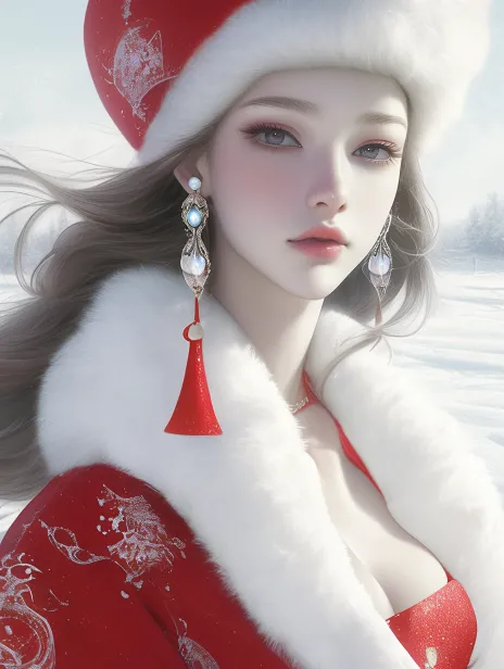 Midjourney Bot 更新时间:2025-12-23 00:27一位身穿华丽红色衣服的女性,衣服上装饰有白色毛皮,展现出优雅的风格。绝美面貌,淡妆,卡姿兰大眼睛,美瞳,她的长发随风飘扬,搭配着精美的头饰和耳环,增添了神秘感。背景是雪白的雪景,营造出寒冷而梦幻的氛围。整体画面采用细腻的光影效果,增强了人物的立体感与美感,表现出一种古典而高贵的气质。 --ar 3:4 --style raw --stylize 96 --niji 6 --no 水印,字母,图标,畸形手指,模糊的画面,畸形人物,