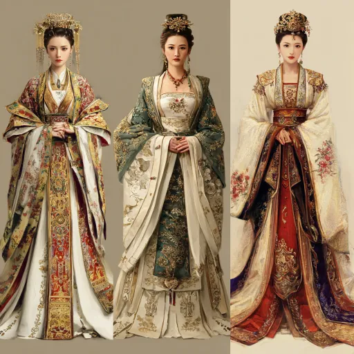 Midjourney Bot 更新时间:2025-12-23 00:02北魏风格的服装效果图,都是女性 --ar 1:1 --v 7 --stylize 100