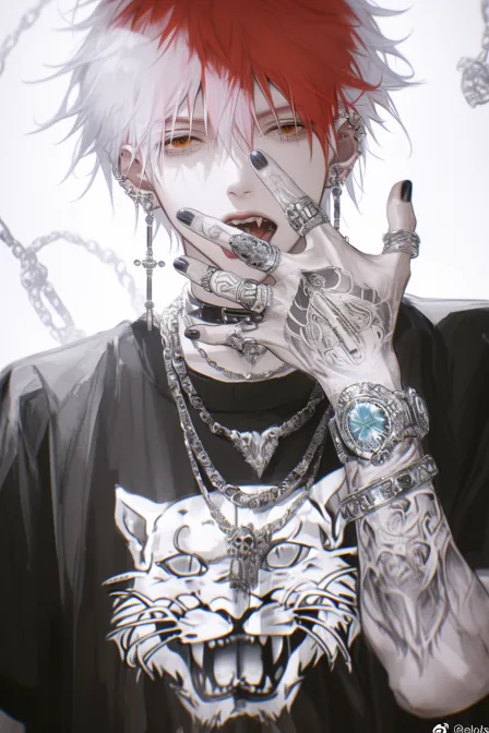 Midjourney Bot 更新时间:2025-12-23 00:04https://images.gogpt.vip/aigf/m_origin/20251223/1997570/8kd2vwntn5au3a1o.jpg 插画半厚涂,高级感,氛围感,朦胧感,oc渲染,3d人物渲染,一位俊朗青年,火红色头发,狼尾微卷,五官端正立体,俊郎,发丝蓬松有层次感;眉眼是上挑桃花眼,眼尾锋利,眼神微眯盯着镜头,带几分桀骜不驯的张扬;面庞精致立体,下颌线清晰利落;一只手轻抚脸庞,手指骨节分明,姿态慵懒又带锋芒;耳朵上排满精致耳钉,金属质感亮眼;身着简约潮牌黑色工装夹克,内搭白色衬衫打底,穿搭时髦前卫,突出人物轮廓面部聚焦。细节五官细节发丝。光影交错,明暗对比强烈 --ar 2:3 --c 24 --stylize 366 --iw 0.3 --niji 6 --sref https://images.gogpt.vip/aigf/m_origin/20251223/1997570/8kd2vwntn5au3a1o.jpg --sw 315