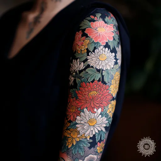 Midjourney Bot 更新时间:2025-12-23 00:05日式纹身,花草,开衫 --ar 1:1 --v 7 --stylize 100