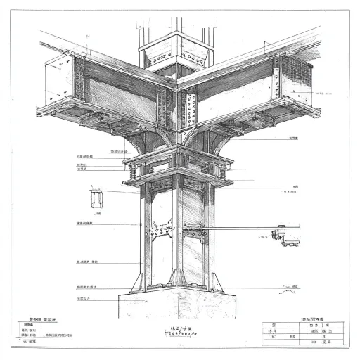 Midjourney Bot 更新时间:2025-12-23 00:08“钢结构节点详图,钢梁插入钢柱翼缘的连接方式。梁端带有竖向端板和加劲肋,插入柱上的U型槽口中。高强度螺栓穿过端板连接。技术图纸风格,剖面图,黑白线条,工程蓝图,高精度,标注部件:钢梁、钢柱、端板、加劲肋、U型槽、高强螺栓。” --ar 1:1 --v 7 --stylize 100
