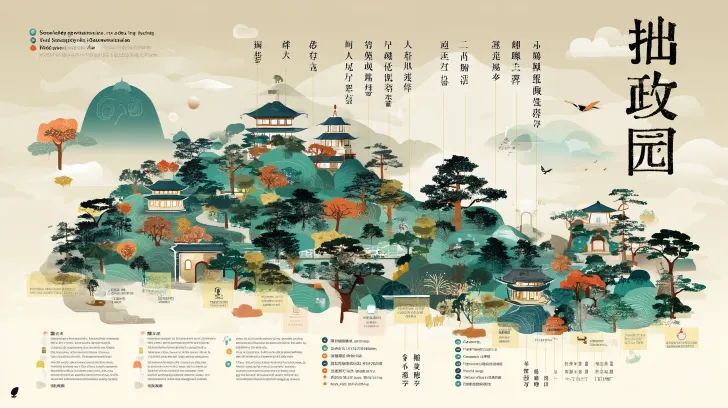 Midjourney Bot 更新时间:2025-12-22 00:19A hand-drawn layout map of the Suzhou Humble Administrator's Garden, which includes Chinese architectural symbols and elements of Chinese landscape painting, featuring various cultural symbols and historical landmark patterns of the Humble Administrator's Garden. The vector illustration adopts a flat design style, incorporating cartoon images, simple lines, and solid color blocks. The overall background uses a beige color tone. The colors are vibrant and full of life. The minimalist composition creates an ambiance filled with fantasy. — Aspect ratio 16:9 --ar 16:9 --v 7 --stylize 100 --sref https://images.gogpt.vip/aigf/m_origin/20251222/1960343/v8jlnwzhttz1c0n9.jpeg