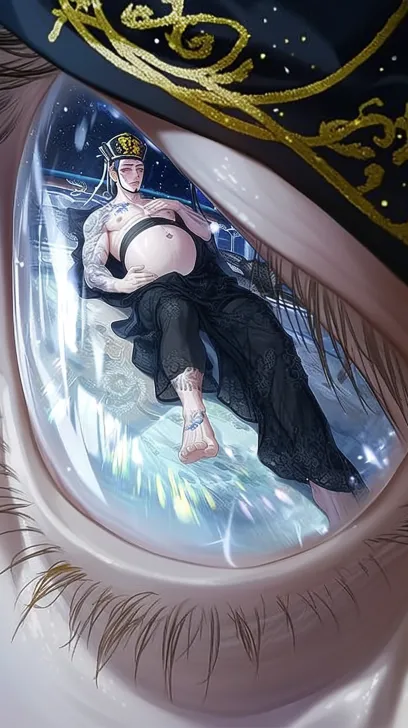 Midjourney Bot 更新时间:2025-12-20 00:01眼睛特写,冰冷且清新透明。虹膜中映出‘‘一个俊美动漫男人,fit,怀孕,清晰8K,冷白皮,腹肌可见,双腿细长,发光,夜晚,身上胸前和腿上都有纹身,黑蕾丝汉服,刺绣帽子京剧发冠,黄白线画,后仰,呈大字型坐在地上,正面视角,’’在眼中的倒影中清晰可见 --ar 9:16 --style raw --stylize 180 --niji 6 --no no