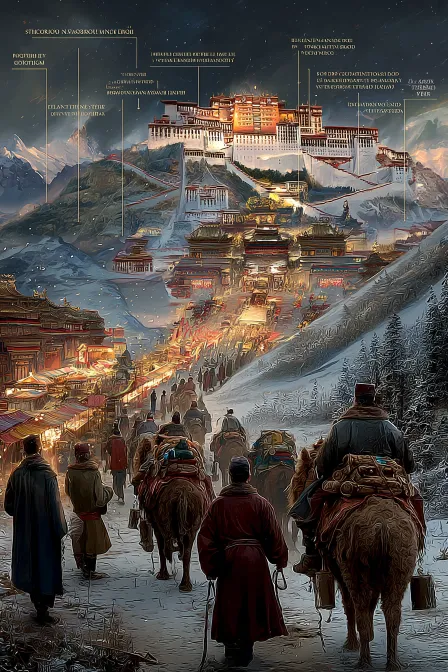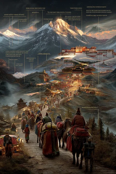 Midjourney Bot 更新时间:2025-12-20 00:04https://images.gogpt.vip/aigf/origin/20251128/1764317583951239_1.png https://images.gogpt.vip/aigf/origin/20251128/1764317583951239_1.png 《马帮启运·驼茶穿川》—— 以马为舟,以路为弦 核心场景 滇川边境茶马古道起点,千匹骡马组成马帮启运:马帮队列蜿蜒如长龙,骡马驮载茶篓(贴“普洱贡茶”封条),马蹄踏碎晨霜;马锅头手持马鞭引路,脚夫捆绑茶包,藏羌向导牵马前行,茶篓上插着防风铃铛;古道旁土司官署赠礼送行,百姓焚香祈福,远处雪山巍峨、峡谷幽深,马队向群山深处延伸,晨雾中铃铛声穿谷回荡,尽显“万马涉险,茶路拓疆”的豪迈。 视觉设计- 构图:“纵向纵深构图”,以马帮队列为核心,从起点向雪山峡谷延伸,近景马队细节、中景群山环抱、远景雪山云海,形成“路穿山海”的壮阔格局;- 色调:深褐古道(#966C4A)+茶篓深绿(#2D5D28)为主,雪山冷白(#F5F5F5)、晨雾淡紫(#E2E8FF)点缀,马帮布衣褐黄(#8B5A2B)提亮,营造“古道拓荒”的苍茫氛围;- 细节:马鬃的鬃毛纹理、茶篓的绳索捆绑痕迹、马锅头的皮鞭纹饰、雪山的冰川肌理、铃铛的金属光泽,强化马帮启运的真实感;- 技术创新:AIGC实现“马队动态行进+云雾穿谷效果”,马蹄踏地的扬尘轨迹、云雾穿过峡谷的流动逼真,马队蜿蜒的透视感精准,增强“驼茶穿川”的视觉冲击。 民族服装,中国传统建筑,全景, --ar 2:3 --v 7 --stylize 152 --iw 0.5 --sref https://images.gogpt.vip/aigf/origin/20251128/1764317583951239_1.png --oref https://images.gogpt.vip/aigf/origin/20251128/1764317583951239_1.png --ow 400 --sw 91 --no 现代物品