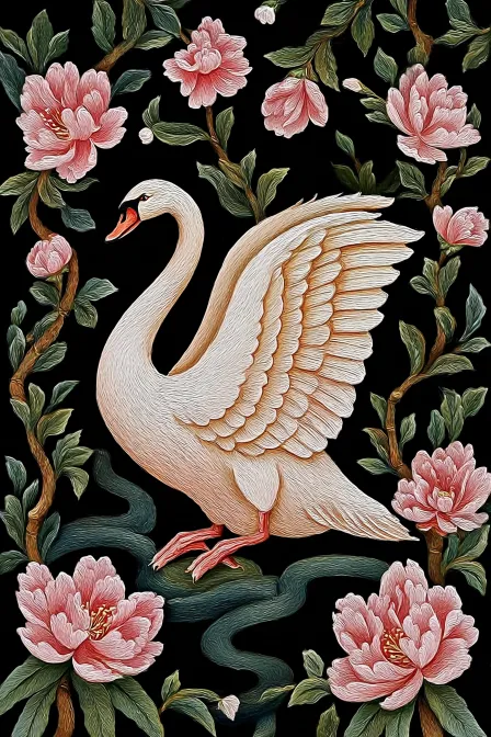 Midjourney Bot 更新时间:2025-12-20 00:06https://images.gogpt.vip/aigf/m_origin/20251219/1926431/w5plql5octssecx2.jpg 这幅图展示了一只优雅的天鹅,身姿娴静,展翅的姿态生动且细腻。天鹅的羽毛以柔和的色调呈现,展现出自然的美感。周围环绕着盛开的粉色花朵和绿叶,形成了一个精致的框架,增添了画面的生动感。背景为深色,与天鹅和花卉的色彩形成鲜明对比,使整体画面更具视觉吸引力。 提示词:天鹅,粉色花朵,绿色叶子,优雅姿态,鲜明对比,生动画面。 高分辨率, 最佳质量, 超高清, 16K质量, 超精细 --ar 2:3 --v 7 --stylize 100 --no 3D