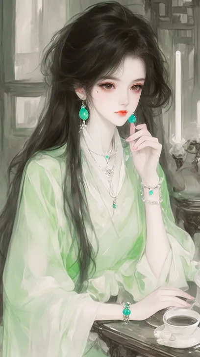 Midjourney Bot 更新时间:2025-12-20 00:07半身像,清冷古风师姐形象的女性,乌黑长发梳成高髻造型,眉眼清冷,眼角缀一颗小巧黑痣,浅杏色眼眸淡然望向前方,身着浅白色薄纱古风服饰,左手轻搭在器物边缘、手指微曲呈优雅姿态,手腕佩戴玉质手镯,耳间垂挂绿松石耳坠,脖颈绕细银链,皮肤白皙细腻,新中式写实绘画风格,柔和的柔光打光,笔触细腻,氛围感清冷疏离,8K高清,细节丰富 --ar 9:16 --style raw --stylize 334 --niji 6 --profile 3mwgowo eihlxh5 pb4clzi dgr11ww --no watermark,text,european,old,beard