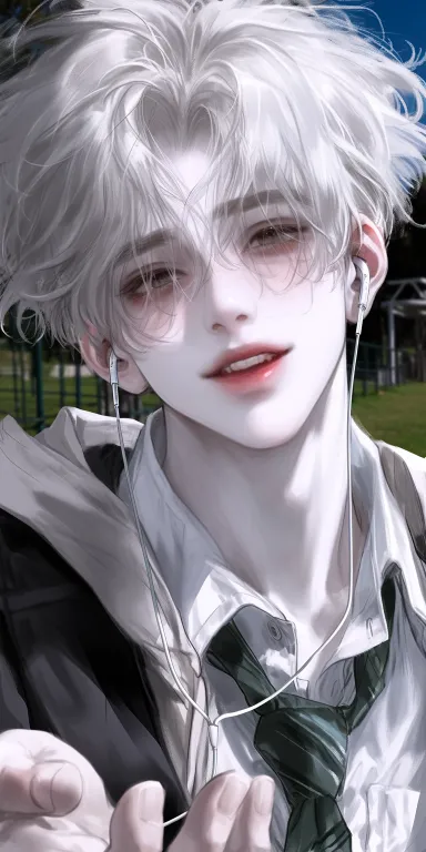Midjourney Bot 更新时间:2025-12-20 00:08男性,正面看镜头,校服,耳朵带耳机线,上半身照,帅气外表,面部细节,笑容,阳光灿烂,有一束暖黄色阳光照着头发与脸,柔和阴影,学校阳光风格,背景操场草地,8K画质,清晰面部图像质量,高清图像质量,白皙肌肤,浅黄色头发,双眼略微下垂,冷脸疏离感。面部线条平滑柔顺,鼻子高挺笔直。眼珠子是棕黑色的带眼睛,眼睛和尾巴略微下垂。手指纤细,动漫风格 --ar 1:2 --stylize 251 --niji 6 --profile uh7zf4j --no 禁止出现浓妆艳抹,不要仰躺动作,禁止出现白色背景