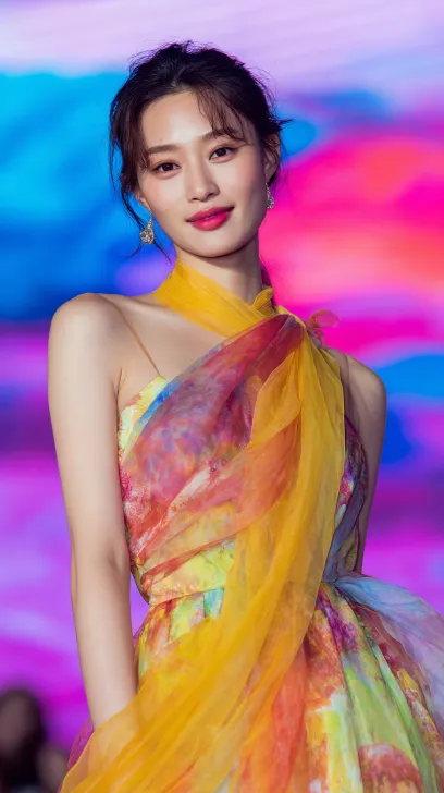 Midjourney Bot 更新时间:2025-12-20 00:09华丽鲜艳的超长款透明雪纺印花纱巾,展示纱巾的模特是韩系美女,三七分斜刘海时尚波浪发型,模特把雪纺印花纱巾当作披肩披在肩上,右肩膀的雪纺印花纱巾滑落,半身像聚焦在华丽雪纺印花纱巾,美女微微颔首害羞,淘宝电商纱巾 --ar 9:16 --v 7 --stylize 100