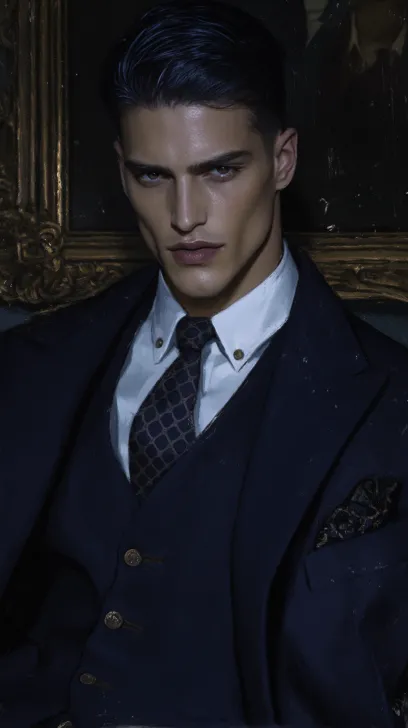 Midjourney Bot 更新时间:2025-12-20 00:10一个英俊的35岁男性,帅气,成熟,成熟,坏笑,深褐色虹膜,穿白色衬衣,系黑色花纹领带,藏蓝色马甲,外穿藏蓝色西服,衣服胸口有装饰,压根感十足,黑色短发,二八分发型,背景西餐厅,油画色彩,重涂油画,清透,哑光,大胆的构图。精致的五官,老电影滤镜,8k壁纸,大师之作,高清,极致光影。 --ar 9:16 --style raw --c 1 --stylize 275 --niji 6 --profile cufsr7t 138q21m dr8dwsn 2twrvmr 8ymlo6q --no 胡子