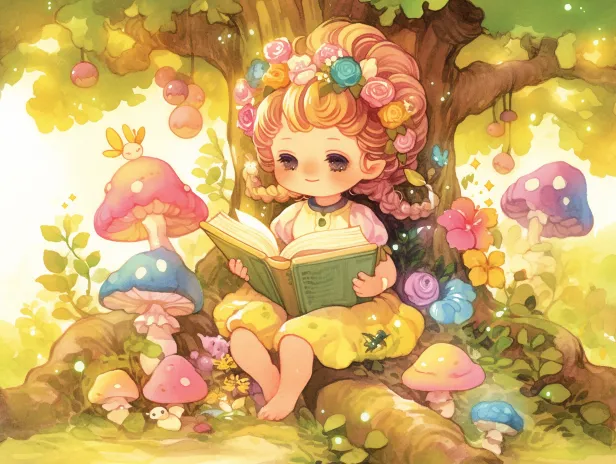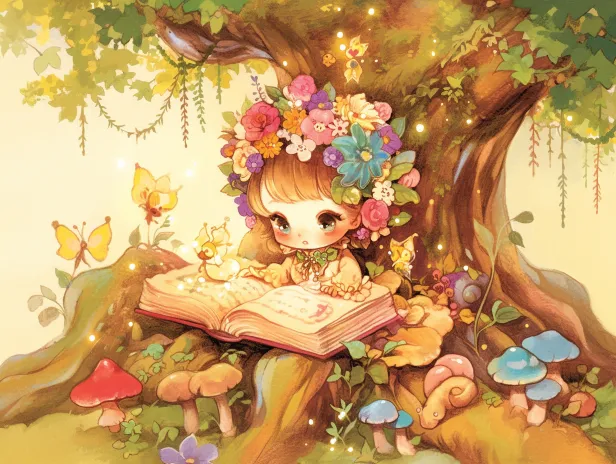 Midjourney Bot 更新时间:2025-12-17 00:09画面采用中心对称构图,一位头戴花冠的小女孩以放松的姿态端坐于古老橡树巨大的盘根之上,成为整个林间空地的视觉中心。 她双腿自然垂下轻轻摆动,双手捧着一本摊开的、书页微微泛光的旧书,指尖正轻触书页上一处凸起的烫金纹样,动作轻柔而专注。她的眼睛因读到有趣之处而闪闪发亮,嘴角噙着温暖又俏皮的笑意,仿佛正与书中的世界悄悄对话。 在她身旁盘曲的树根凹陷处,积着一小汪清澈的雨水,一只背着半透明壳、露出淡蓝色软体的树蜗牛正沿着书脊缓缓向上爬行。而在她摊开的书页上方,几只散发着星点般银白色微光的小精灵蝶正萦绕飞舞,光影投在书页上,仿佛文字也活了过来。背景是完全对称的神秘林间空地:巨大橡树位于正后方,两侧是低垂的发光柳条与发光的蓝色蘑菇圈,一道柔和的月光从正上方树冠的缝隙中垂直洒落,照亮女孩与手中的书。整个场景弥漫着宁静的求知氛围与梦幻的微光,洋溢着静谧而充满想象力的治愈气息。 --ar 4:3 --stylize 100 --niji 6 --sref https://images.gogpt.vip/aigf/m_origin/20251213/28068/kj65bxygfo35nlop.jpg https://images.gogpt.vip/aigf/m_origin/20251213/28068/fkq9frt2s4hetvfk.jpg https://images.gogpt.vip/aigf/m_origin/20251213/28068/eba30nk5oss9wx43.jpg https://images.gogpt.vip/aigf/m_origin/20251213/28068/v1t7annd3rmwsaq4.jpg --cref https://images.gogpt.vip/aigf/m_origin/20251216/28068/u5iidyptej5d5n1e.webp --cw 7 --sw 79