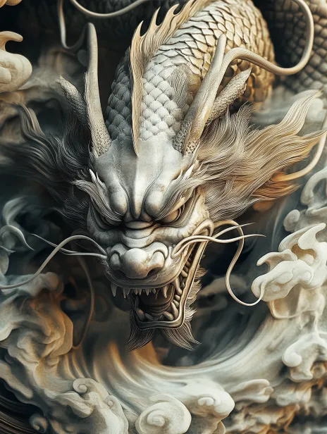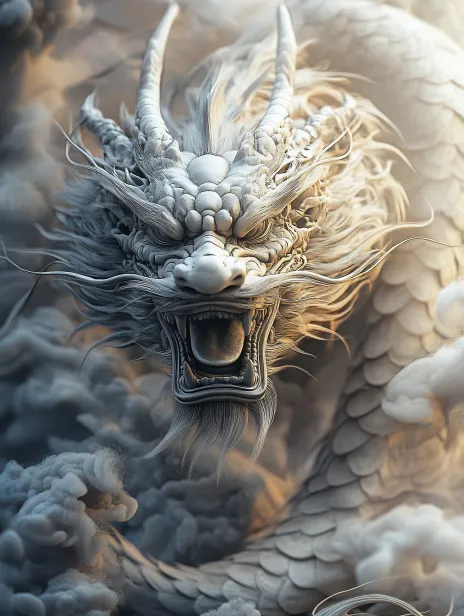 Midjourney Bot 更新时间:2025-12-17 00:12威严的中国龙面部特写,展现细致入微的鳞片和强力眼神,充满力量的神态。龙身盘绕在翻滚的波浪和飘逸云雾中,形成动态漩涡效果,突显立体感和深度。背景融入传统中国文化元素,如祥云和水纹,整体视觉效果震撼。采用超现实主义水墨画风格,Octane渲染增强细节,虚幻引擎光效营造柔和的背光。 梦幻色彩,16K质量,超细节,超写实, --ar 3:4 --v 6.1 --style raw --stylize 100 --cref https://images.gogpt.vip/aigf/m_origin/20251216/1625555/szkyeukzxbhc0rbk.png --cw 100
