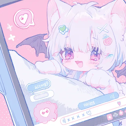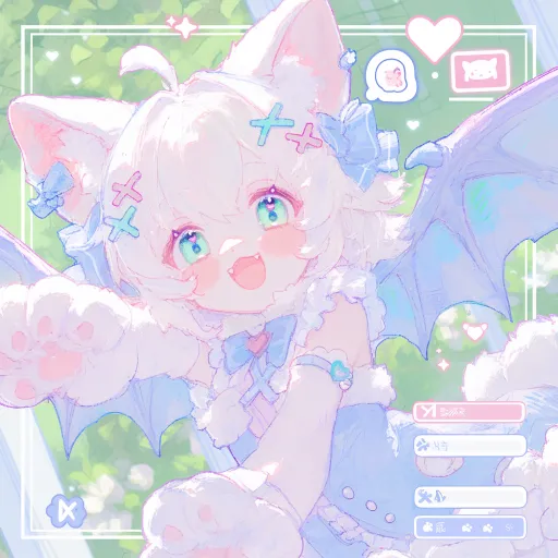 Midjourney Bot 更新时间:2025-12-18 00:00一个可爱的猫猫形象的小恶魔,Q版 她在养成游戏里 外框是养成游戏的界面UI,也有一些游戏界面的互动按钮,好感度状态栏之类的界面按钮,她头上有交叉的骨制品发夹,浅色风格,可爱界面,小恶魔,养成游戏界面ui,小恶魔在界面UI里,竖屏手游界面ui,鼠标光标 --ar 1:1 --stylize 400 --niji 6 --profile bstkyer cxp78x9 --no 指甲油、长指甲、尖指甲