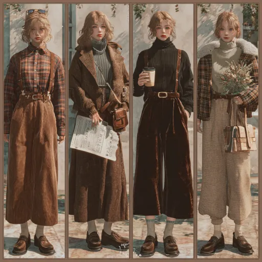 Midjourney Bot 更新时间:2025-12-18 00:00https://images.gogpt.vip/aigf/m_origin/20251217/1990796/of0t93elvsb5ii2l.jpeg https://images.gogpt.vip/aigf/m_origin/20251217/1990796/xahghwuxiemxh2x0.jpeg Model 1 • Top: Red-brown plaid shirt layered with light gray knitted vest • Bottom: Caramel corduroy wide-leg trousers • Accessories: Brown belt, vintage leather messenger bag, sunglasses on head • Style: French retro college style, crisp yet lazy Model 2 • Top + Bottom: Dark brown velvet waist-defining long skirt (neckline spliced with white lace) • Accessories: Pearl buttons, brown loafers, holding a vintage bouquet • Style: French retro elegant style, velvet material showcases autumn and winter texture Model 3 • Top: Black turtleneck inner layer + plaid fur collar cropped jacket • Bottom: Caramel corduroy wide-leg trousers • Accessories: Holding coffee cup and newspaper, black leather shoes • Style: French street retro style, casual yet layered Model 4 • Top: Brown-cocoa knit cardigan with blue trim • Bottom: Dark brown plaid midi skirt • Accessories: Light khaki slouchy socks, brown loafers, holding a bouquet • Style: French retro gentle style, classic pairing of knit and plaid Model 5 • Top: Plaid shirt layered over beige knitted base, paired with light gray cropped cardigan • Bottom: Dark brown plaid straight midi skirt • Accessories: White knitted scarf, vintage handbag, black knee-high boots • Style: French retro literary style, layering creates a lazy feel Model 6 • Top: Beige shirt + brown fine striped short suit • Bottom: Matching series fine striped pleated skirt • Accessories: Plaid scarf, brown leather briefcase, black loafers • Style: French retro commuting style, sharp yet elegant Model 7 • Top: Navy blue chunky knit cardigan + black turtleneck inner layer • Bottom: Dark gray woolen swing skirt • Accessories: Floral silk scarf, holding a book, black knee-high boots • Style: French retro lazy style, chunky knit emphasizes autumn and winter atmosphere Model 8 • Top: Light gray cropped knitted cardigan + beige knitted vest • Bottom: Dark gray woolen pleated skirt • Accessories: Thin necklace, black handbag, black ankle boots • Style: French minimalist retro style, basic pieces exude sophistication Model 9 • Top: Light gray diamond-patterned knitted cardigan + turtleneck base • Bottom: Yellow-brown plaid midi skirt • Accessories: Brown leather long-handle bag, black knee-high boots, holding coffee cup • Style: French retro pastoral style, diamond knit showcases gentleness Model 10 • Top: Ginger yellow fur collar duffle coat • Bottom: Dark gray woolen pleated skirt • Accessories: Vintage leather tote bag, holding a book, black knee-high boots • Style: French retro college style, duffle coat elements enhance autumn and winter atmosphere --ar 1:1 --v 7 --stylize 100 --iw 0.25