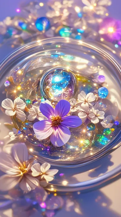 Midjourney Bot 更新时间:2025-12-18 00:01A flower plate filled with various round gemstones or colorful beads, with dazzling and attractive special effects that occupy 80% of the full screen, 3D rendering, and dynamic effects. --ar 9:16 --stylize 100 --niji 6 --no hand,person,holder,paper fan,fabric,painting,human,hand