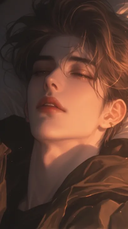 Midjourney Bot 更新时间:2025-12-16 00:09厚涂笔触风格(细腻笔触,低饱和珍珠色调,3D轮廓线),常规视角,特写构图。英俊男子(睡颜沉静,睫毛纤长,黑色短发柔软地散在枕上)还在熟睡。清晨第一缕暖白色的曦光,恰好透过窗帘缝隙,像一道柔和的光刃,轻轻横过他的鼻梁和微张的唇。光线如此温柔,甚至能看清他脸上细小的绒毛。他眼皮动了动,缓缓睁开,初醒的深黑色瞳孔在暖白的光线里还有些涣散,懵懂地望向镜头方向),然后下意识地,勾起一个带着睡意的、全然依赖的浅笑。 面部细节32k画质,二次元插画厚涂,帅哥,非真人 --ar 9:16 --stylize 530 --niji 6 --profile 2twrvmr 7yqculp ys8rdej