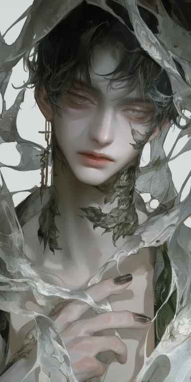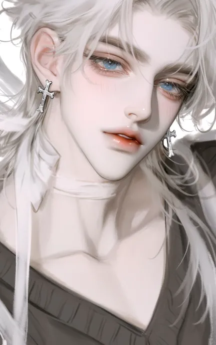 Midjourney Bot 更新时间:2025-12-15 00:13https://images.gogpt.vip/aigf/m_origin/20251214/1822908/16m8neuyrcfzdm2b.jpg https://images.gogpt.vip/aigf/m_origin/20251213/1822908/paca60yowf2a0giy.jpg Young male, with a sense of atmosphere, white medium long hair, fluffy and messy, light blue glass eyes, light powder blusher, light powder lips, white face, slender curly white eyelashes, white eyebrows, delicate and three-dimensional facial features. Grey V-neck knitted top. Wearing silver cross earrings on both ears, white ribbons on the neck, and white bandages on the hands. Advanced CG illustration, stroke, line style, messy, dynamic freeze frame, anime atmosphere, advanced sense, facial lighting, detail depiction, creating a 24K picture quality adult male mermaid drawing, full body photos, comic lines, masterpieces, HDR, Light tracking, wet long hair and huge fish tail on the sea surface, extremely attractive face and figure, looking sideways at the camera, the unique charm of male mermaids, detailed description, amazing face, delicate skin, kiss marks on the neck, majestic and handsome, slightly drooping eyelashes, arrogant and handsome, casual charm, very attractive. Wild, thick eyelashes, bright blue eyes, cold eyebrows and eyes, wild and unrestrained man, sketch, hair tied up, (light) (film texture), close-up close-up of handsome man's face, (clear eyebrows), collarbone, long eyelashes, delicate beauty, frontal view, male focus, silk texture, (((long eyelashes)), lip color depiction, camera focus, beauty, beautiful facial features, affectionate eyes, (fox eyes), 16K image quality (deep eyebrows and eyes) (charm) (charming male boy), high-definition image, wallpaper, delicate facial visual effects, male boy, ultra-high resolution, beautiful facial features, masterpiece. The sentence is:, HDR, Light tracing, semi thick painted exquisite portrait, melancholic and delicate rendering, delicate and thick painting, hazy feeling, macro lens, slight overhead perspective, watercolor illustration, facial focus, delicate texture, BJD feeling. --ar 10:16 --style raw --c 5 --weird 3 --stylize 375 --iw 0.3 --niji 6 --profile esz4tdp 8rfr9yc baxk1uk --no water