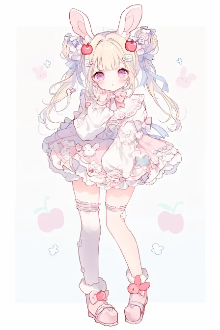 Midjourney Bot 更新时间:2025-12-15 00:13https://images.gogpt.vip/aigf/m_origin/20251213/1978477/2s0zhrfsnk3zxmwa.png 金色头发双丸子马尾头的少女,头饰为红苹果发圈。头上两个可爱的兔耳朵。穿着可爱的苹果和兔子元素裙子,上面印着红苹果和苹果挂件。右手拿着苹果糖。左手拿着一个红苹果。穿着可爱的毛绒兔子靴子和毛绒长筒袜。动作像跳舞一样轻盈活力。线条清晰。 --ar 2:3 --stylize 96 --iw 0.5 --niji 6 --sref https://images.gogpt.vip/aigf/m_origin/20251212/1978477/4yf03p1hp5o9fuha.png https://images.gogpt.vip/aigf/m_origin/20251213/1978477/qbzta3ofjjdv1va4.png https://images.gogpt.vip/aigf/m_origin/20251213/1978477/wcu9krbcj598afcf.jpeg --sw 28