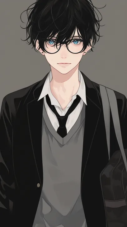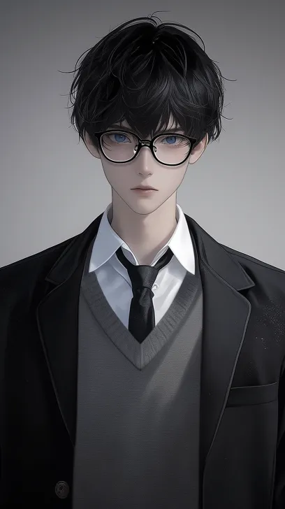 Midjourney Bot 更新时间:2025-12-15 00:04A handsome youthful male student with a direct gaze, wide shot, anime style, half-length image, facing the camera, cold white skin, youth, bright colors, bright picture, male high school student, wearing a black student suit jacket (inside wearing a white shirt and gray v-neck sweater, tied with a black tie), black hair, blue eyes, wearing black-rimmed glasses, half-length image. --ar 9:16 --style raw --stylize 100 --niji 6 --no Text,Chinese characters,English,bandage,scar,beard,stubble,looking up,profile,looking down.