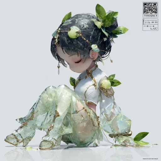 Midjourney Bot 更新时间:2025-12-15 00:12Commercial advertising rendering, product design, three-dimensional structure design, character modeling, glass products, Chibi, Gold inlaid jade craft, complete design display, Sallulu, anime, a transparent girl made of glass fired, huddled in the broken lychee skin, emerald green lychee leaves, delicate facial features, multi material mix, wearing a white cheongsam with unique cutting, colorful luster, exquisite shiny glass art, structural design, metal decoration, commercial grade material rendering, glass skin, closed eyes, metal edging process, clothing design, Chinese craft --ar 1:1 --v 7 --stylize 192 --sref https://images.gogpt.vip/aigf/m_origin/20251214/140639/j8nvxx24yrml8w0c.jpg https://images.gogpt.vip/aigf/m_origin/20251211/140639/zlp79p6hnuaqql7x.jpg https://images.gogpt.vip/aigf/m_origin/20251213/140639/oioher7odahxgwr5.png --sw 555 --sv 3