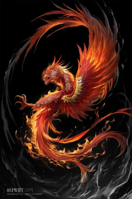 Midjourney Bot 更新时间:2025-12-14 00:00一只栩栩如生的火焰凤凰,展翅高飞,充满力量与灵动。凤凰的羽毛呈现出红色、橙色和金色的渐变,细腻的鳞片和羽毛纹理展现出精致的工艺。它的头部像猛禽般锐利,眼神炯炯有神,流露出威严和智慧。周围火焰如同灵动的流线,仿佛在与凤凰共舞,背景则是深邃的黑色,增强了整体的神秘感和戏剧性。整体画面风格融合了奇幻与细致的插画艺术,色彩鲜艳,充满动感和张力。 --ar 2:3 --v 7 --style raw --stylize 100 --sref https://images.gogpt.vip/aigf/m_origin/20251213/1625555/7ayb5kp9cr3b1tn2.png --oref https://images.gogpt.vip/aigf/m_origin/20251213/1625555/5a8u3abj370eom50.png --ow 405 --no shading