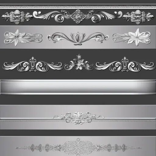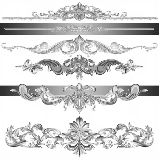 Midjourney Bot 更新时间:2025-12-14 00:03https://images.gogpt.vip/aigf/m_origin/20251213/1543705/8nyynb8m58qen1fu.jpg This is a set of exquisite decorative border designs, presenting a luxurious and elegant style overall. Each border is primarily silver, showcasing intricate lines and embellishments, suitable for decorating artworks or documents. The first row features elegant curves and floral elements, appearing very splendid. The second row displays a symmetrical design, accompanied by complex patterns, exuding a sense of classical beauty. The third row consists of fluid line designs, minimalist yet not lacking in elegance. The fourth row's border design returns to a more intricate style, with delicate floral decorations in the center at the bottom, making the overall design harmonious and rich in elegance. The entire combination showcases a wealth of visual effects through different decorative details and design elements, enhancing artistic and luxurious feelings, suitable for high-end designs or celebratory themed works. --ar 1:1 --style raw --stylize 100 --iw 0.3 --niji 6 --no Bangs,fringe,short hair.