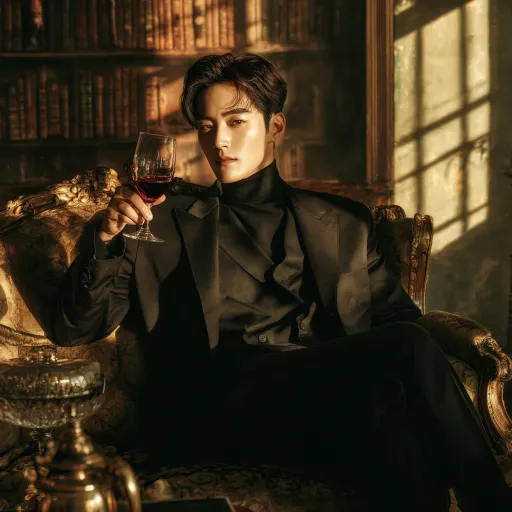 Midjourney Bot 更新时间:2025-12-14 00:03一位身穿黑色西装的男士,优雅地坐在古典风格的沙发上,手中轻轻举着一杯红酒,展现出沉稳与自信。背景是华丽的室内环境,墙壁上装饰着书架,书籍整齐排列,金色的阳光透过窗户洒进来,形成柔和的光线,营造出一种奢华而神秘的氛围。画面中包含了丰富的细节,灯具和家具散发出古典的魅力,整体风格体现出复古与高雅的结合。光影效果极为精致,展现出超高清的细节和视觉上的冲击力。 --ar 1:1 --v 7 --stylize 100