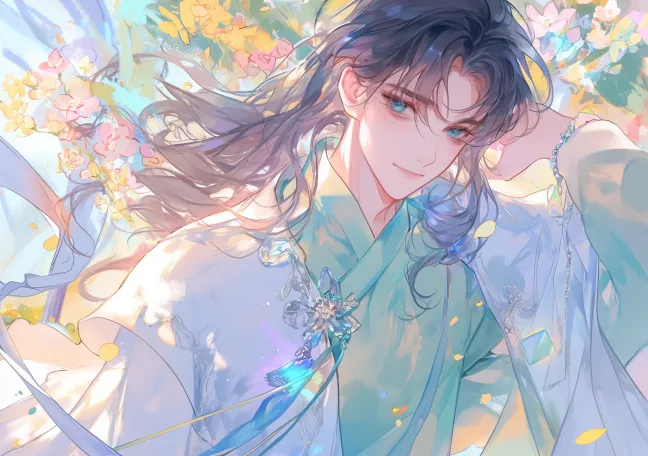 Midjourney Bot 更新时间:2025-12-13 00:25平行视角,脸微微朝向左边,脸至少有3/4可见,单人,中国古代,动漫风格的绿袍男子,男子在黑夜中,背光,古风男子,水彩风格, 角色:飘逸的长发,飘逸的头发,乌黑色长发,黑色长头发,3/7刘海,发髻,蓝色眼睛,微笑,绿/白色的古风长袍,美丽的男神,银色的挂饰装饰在衣服上,红色点缀,绿色宽大的长袍袖子,白色腰带有红色配饰,宽大的衣袖随风舞动,几层衣服外袍的下摆盖住了腿,展现出优雅的姿态。 动作:男子黑夜里,背光,手持莲花灯,男子的头发很长,所以身后的头发长到腰后 背景:元宵节夜晚的氛围。 dynamic pose, traditional chinese clothing style, action scene, anime art style, detailed expression,16k,高质量,大师级画质,pixiv,水彩,五官精致,高分辨率,16K质量,超高清,复杂细节,梦幻色彩,宽景 ,突出人物的英俊气质和剑客的洒脱风范,整体画面充满了古风侠义的氛围。high resolution 梦幻色彩,全身角色,全身, 梦幻色彩,高分辨率,超细节, 梦幻色彩, 梦幻色彩::1000 --ar 297:210 --niji 6 --sref https://images.gogpt.vip/aigf/m_origin/20250101/617471/6n25uru3wyy07was.jpg https://images.gogpt.vip/aigf/m_origin/20250104/617471/lgp61d20k2tf2ibq.jpg https://images.gogpt.vip/aigf/m_origin/20251210/617471/l6sd697hx06b4bmg.jpg https://images.gogpt.vip/aigf/m_origin/20250618/617471/2bwu8505mozwnv4o.jpg --no 短发,白色背景,白天,浅色背景,不是黑夜,侧脸,白色外套,白色外袍,