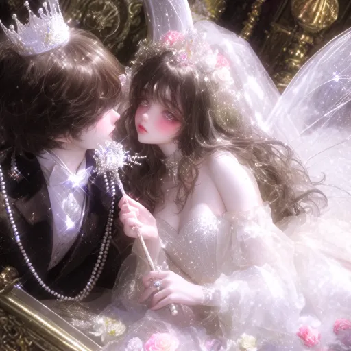 Midjourney Bot 更新时间:2025-12-13 00:35手里拿着魔法棒,戴着头纱王冠(不要花!!!),穿着礼服小短裙,芭蕾风短款礼服、婚纱礼服、高定短裙抹胸、珍珠装饰、立体花朵、不规则裙摆、网纱流苏纯欲风、公主风、仙女裙,亮晶晶,衣服上挂着亮晶晶的链子,躺在公主床上,长距离拍摄上身和上大腿,展示角色的身体厚涂风格,无需近距离观察,超高分辨率面对镜头,36k动态姿势无畸形,正常指比,美丽清晰,梦幻华丽的灯光效果,梦幻风格,以及单人化身展示。外观:角色的脸部精致,带有朦胧的美感,他们的眼睛像白色的宝石笼罩在柔和的光线下,难以看清但充满梦幻;明亮的唇色在整体光色调中尤为突出,为脸部增添了一丝亮度,给人一种缥缈和不真实的美感。发型细节:长长的金发,带有一丝流畅的金,发丝轻盈流动,呈现出自然的卷曲状态,与整体梦幻气氛相得益彰。照明与阴影:光线柔和且弥漫,产生朦胧的光晕效果,光暗对比不明显。相反,整个画面笼罩在梦幻般的柔和光线中,突出了人物的飘逸质感。光影的运用让画面感觉像是置身于梦幻世界。绘画风格:属于梦幻缥缈的插画风格,衣服颜色为白色透明色整体色彩以金、白等浅色为主,花的颜色为粉色,画面充满透明度和轻盈感。细节搭配精细的光点和朦胧效果,整体呈现出一种超现实、梦幻般的视觉体验。穿着:穿着与整体色调相协调的服装,款式看起来比较清淡,可以用透明或纯粹的材料制成,这与发型和背景的风格相一致 ,抹胸抹胸,躺在公主床上躺在公主床上 --ar 1:1 --style raw --stylize 1000 --niji 6 --profile xhwejnv --no 双人 头饰的花