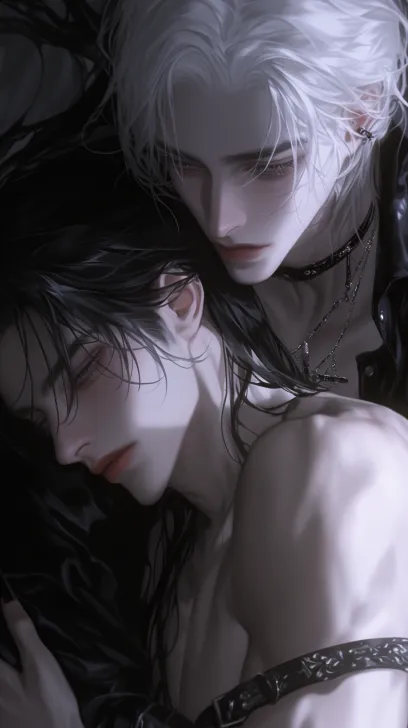 Midjourney Bot 更新时间:2025-12-13 00:41两位男性,黑色头发从背后抱住白色头发的腰,脑袋抵在白色头发的肩膀上,冷白皮,8k高级,在卧室里,薄情眼 --ar 9:16 --style raw --niji 6 --profile 8ungh8d --no 不要出现真人,头发不要遮住眼睛,眼睛不要闭着,不要刷出真的人,不要出现寸头,不要出现胡渣,不要出现胡子,不要出现老头,手不要出现,牙齿不要露出来。