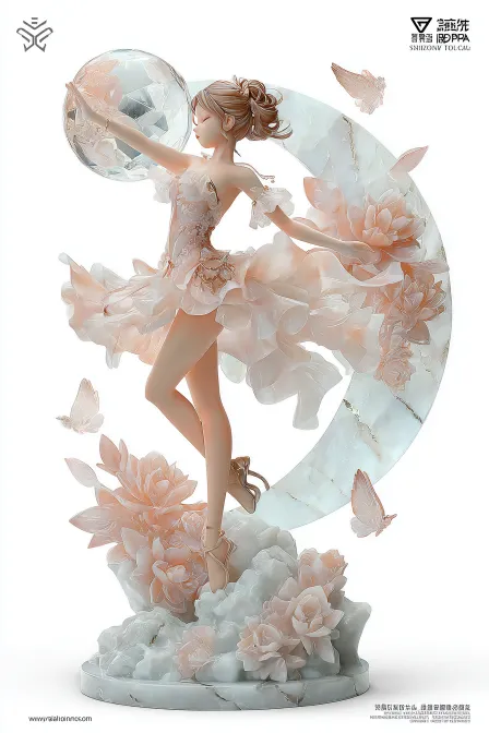 Midjourney Bot 更新时间:2025-12-13 00:44商业广告渲染,产品设计,立体结构设计,人物造型,玻璃艺术品,金镶玉工艺,完整全身展示,赛璐璐,二次元,一个玻璃烧纸而成的小女孩儿,精致的五官,多材质混合,中式玉石雕刻,脚踏玉石雕刻而成的祥云和树枝的底座,手持兰芝,被荔枝外壳一般的空心球型玉雕半遮掩的包裹着,玉石雕刻的花卉和叶片装点着服饰,向身后飘舞的玉带,玉带悬挂着环形的玉佩,大腿上系着寓意着祥瑞的绳结并搭配着玉石,精美散发光泽的玉石艺术品,身穿旗袍,动态设计,腿部卷曲,飞鸟盘旋,中式的图形风格,结构设计,金属装饰,商业级别的材质渲染,皇室工艺,玻璃肌肤,闭着眼睛,红绿配色,中式金属护甲,白色的旗袍,一个巨大的金色的金属壳包裹着女孩儿,服装设计 --ar 2:3 --v 7 --stylize 192 --sref https://images.gogpt.vip/aigf/m_origin/20251211/140639/zlp79p6hnuaqql7x.jpg https://images.gogpt.vip/aigf/m_origin/20251211/140639/9zimjb7qn7gtd3lb.jpg --sw 284 --sv 3