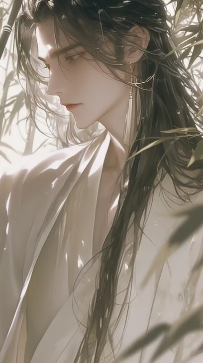 Midjourney Bot 更新时间:2025-12-13 00:45黑发长发 古风男 白色长袍 近距离 表情悲伤 全身特写 古汉风 场景竹林 背上背的剑 --ar 9:16 --style raw --stylize 340 --niji 6